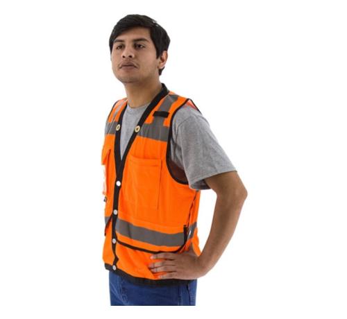 Majestic ANSI 2 Type R High Visibility Surveyors Vest w/ Two-Tone DOT Striping / Hi-Viz Orange - Large