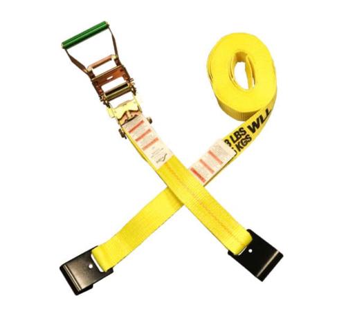 Professional flatbed drivers and hay haulers can benefit from using the high-quality strength and durability of Ancra’s 2-in. x 27-ft. ratchet strap with flat hooks and long wide handle. The chromate-coated steel ratchet with a 7.5-in. long handle and knurled aluminum grip offers superior handling while the extended length fixed end with tri-layer stitching offers superior durability.