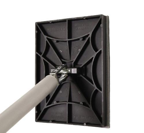 The Black Widow Pro Sander covers more surface area with less user fatigue, and no hard edges means no scuffing on inside corners. Its pole extends to 48”, and its quick-change system makes this the go-to sanding tool of choice for drywall pros.